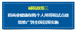 商业健康险个人所得税政策和征管操作: 2017年7月1日起,个人购买符合规定的商业健康保险产品,可以按照2400元/年(200元/月)的标准在税前扣除。 单位统一为员工购买的,视同个人购买,按照单位为每一员工购买的保险金额分别计入其工资薪金,并在2400元/年(200元/月)的标准内按月税前扣除。 享受政策方式: 纳税人购买符合规定的商业健康保险,并取得税优识别码作为享受税收优惠政策的依据,依法享受政策。
