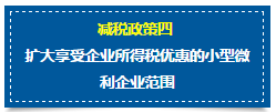 优惠内容: 自2017年1月1日至2019年12月31日,将小型微利企业的年应纳税所得额上限由30万元提高到50万元,对年应纳税所得额低于50万元(含50万元)的小型微利企业,其所得额减按50%计入应纳税所得额,按20%的税率缴纳企业所得税。 享受条件: 1.小型微利企业:是指从事国家非限制和禁止行业,并符合下列条件的企业 (1)工业企业,年度应纳税所得额不超过30万元,从业人数不超过100人,资产总额不超过3000万元; (2)其他企业,年度应纳税所得额不超过30万元,从业人数不超过80人,资产总额不超过1000万元。 2.应纳税所得额: 自2017年1月1日至2019年12月31日,年应纳税所得额低于50万元(含50万元)。